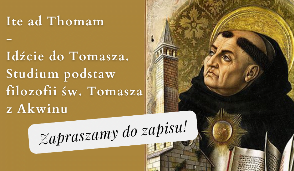Mając to na uwadze, zapraszamy do naszego Studium podstaw filozofii św. Tomasza Ite ad Thomam. Jest to roczny cykl wykładów i konwersatoriów, w którym, pod kierunkiem znawców św. Tomasza, staniemy się jego uczniami, czytając i komentując wspólnie jego dzieła, poznając, w przystępnej formie wyrażoną, jego myśl. Absolwent naszego rocznego studium ma pogłębione i uporządkowane rozeznanie w myśli św. Tomasza, potrafi odnieść ją do współczesnych zagadnień, posiada erudycyjną wiedzę o tle historycznym epoki św. Tomasza, a także o recepcji jego myśli na przestrzeni dziejów.